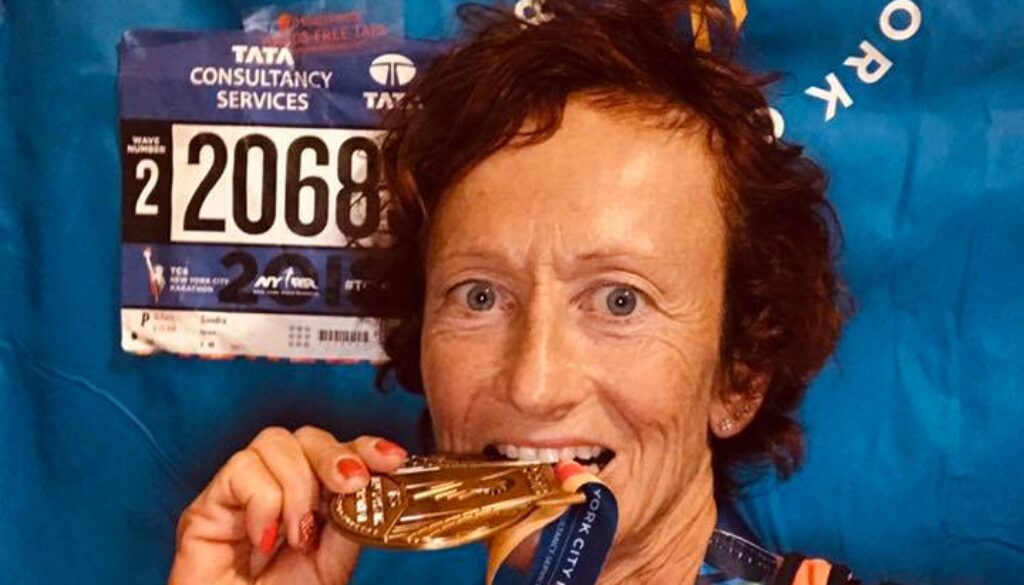 (Nella foto, Sandra Ferraro al termine della New York City Marathon 2018).
